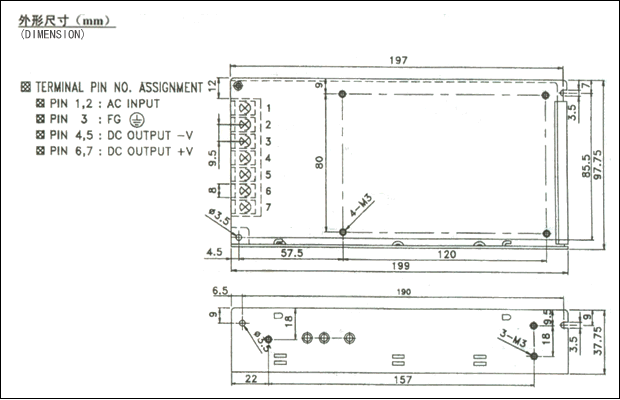 輸入電壓范圍 85~132VAC/176~264VAC SELECTED BY JUMPER OR SWTCH 47~63Hz;255~370VDC