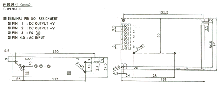 85~132VAC/170~264VAC開關(guān)選擇 |
